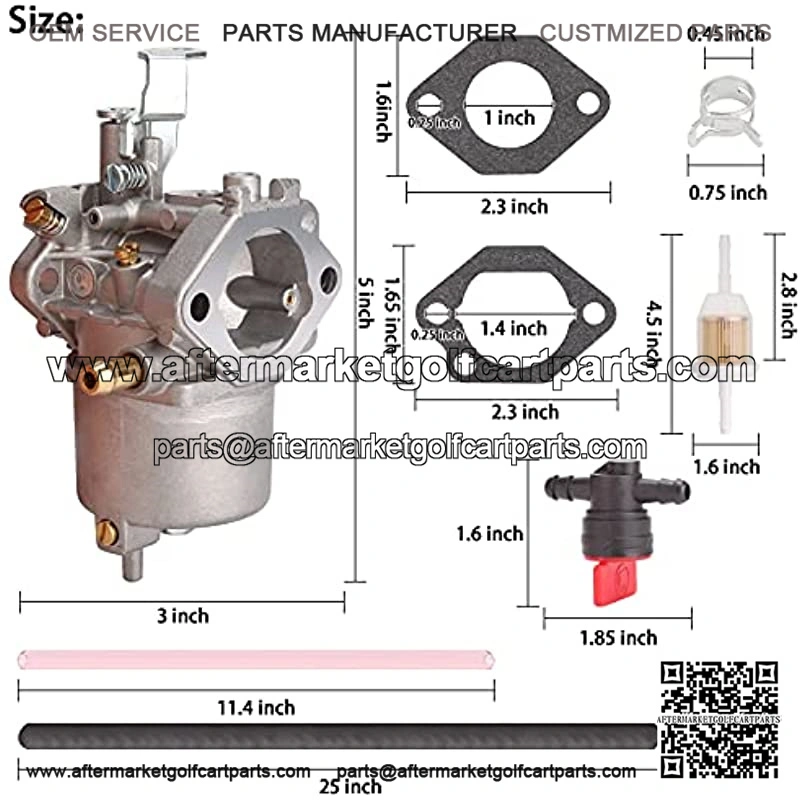 Package include: 1* carburetor,2* gaskets,1* fuel shut off valve, 2* fuel filters, 2* fuel lines, 4* clamps