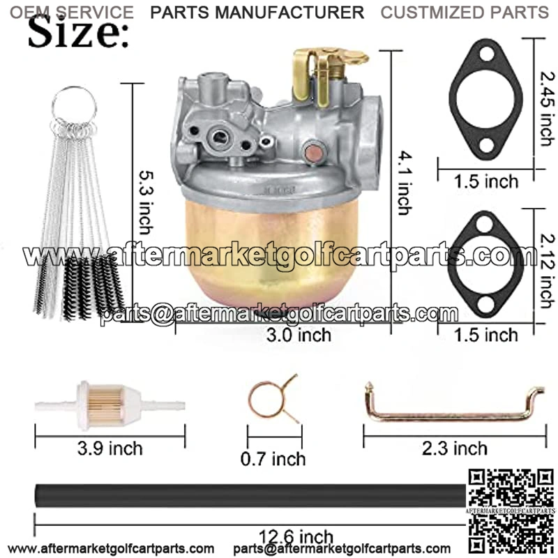 Package includes: 1 x carburetor, 1 x carburetor cleaning brush, 2 x Mount gaskets,1 x fuel filter, 2 x fuel lines, 8 x clamps.