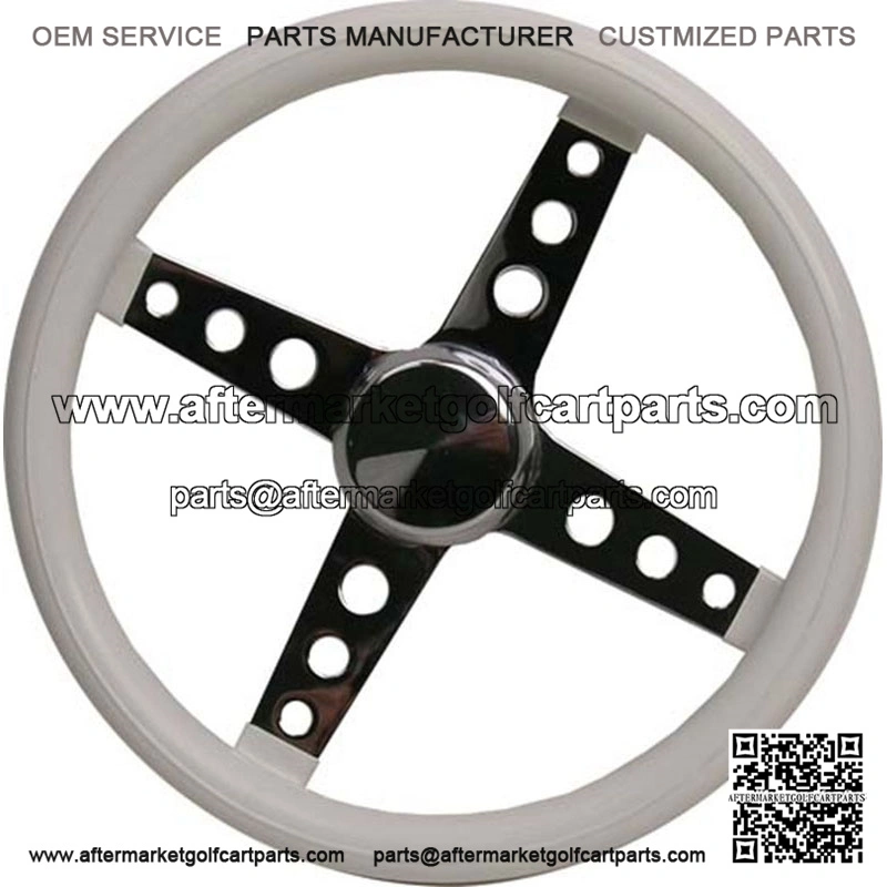 Classic White Gloss With Chrome Golf Cart Steering Wheel Style: Classic Color: White Gloss with Chrome Easy installation on EZGO, Club Car and Yamaha with specialized Adapter only (sold separately) Note: Center cap is not included Add a Black Adapter (Optional – $39)