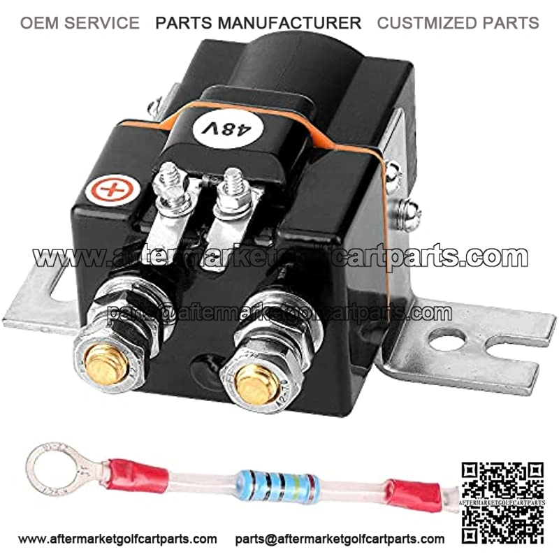 Works on Club Car 1995-up and 2004-2008 Precedent golf carts. Albright 48-volt, 4 terminal solenoid. Include resistor. Replaces OEM#: 101908701, 102774701, N5722, 16077. Make the nuts “hand tight with a 1/4 turn” after that. You will need to check the nuts often as they can become loose over time. 1 Year Warranty – Be careful not to overtighten the nuts on the terminals or they will break and are not covered under warranty.