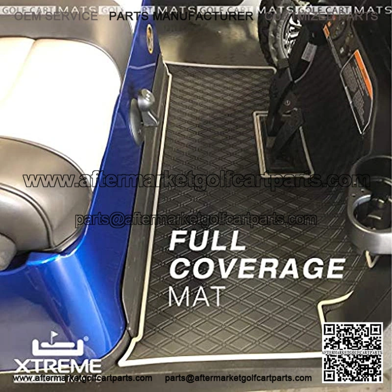 Not for Stretched/6 Seater Carts* Fits Club Car Precedent (2004-2021) / Onward & Tempo (2017-2021) Grey Trim While we may not help improve your golf game, we will improve the life of your OEM flooring. Xtreme Golf Cart Mats are the most advanced floor protection available today for your golf cart / personal transportation vehicles (PTV). Our digital laser measurements ensure our mats fit like a glove. Select a trim color to accent or complement your paint, accessories, and seats. We’re the only after-market mat in the industry that covers your entire floor area- from dash to seat. *Patent Pending. Xtreme Mats has created a FULL COVERAGE golf cart floor liner mat that was laser measured to fit as if it came directly from the manufacturer. Our heavy-duty, 8-mm rubber mat will not slide around or become dislodged over rough terrain. Our mats produce no VOC’s so you won’t have to worry about it stinking up your garage either! Our patent-pending design picks up where the other guys left off. Unlike other golf cart mats that offer only partial coverage, Xtreme Mats won’t limit where riders can place their feet and you won’t end up with a pile of dirt behind your floor mat. Xtreme Mats Golf Cart Mat covers your entire OEM flooring from the bottom of the dash down to the base of the seat. No longer worry about mud, water or dirt damaging your cart’s flooring! We’re here to help increase the life of your cart, and in doing so, its value too, by protecting the factory flooring. Xtreme Mats believes you shouldnave to compromise function for fashion; our golf cart mats offer both. Xtreme Golf Cart Mats are available in red, black, and grey trims to complement almost any aesthetic, with more colors on the way!