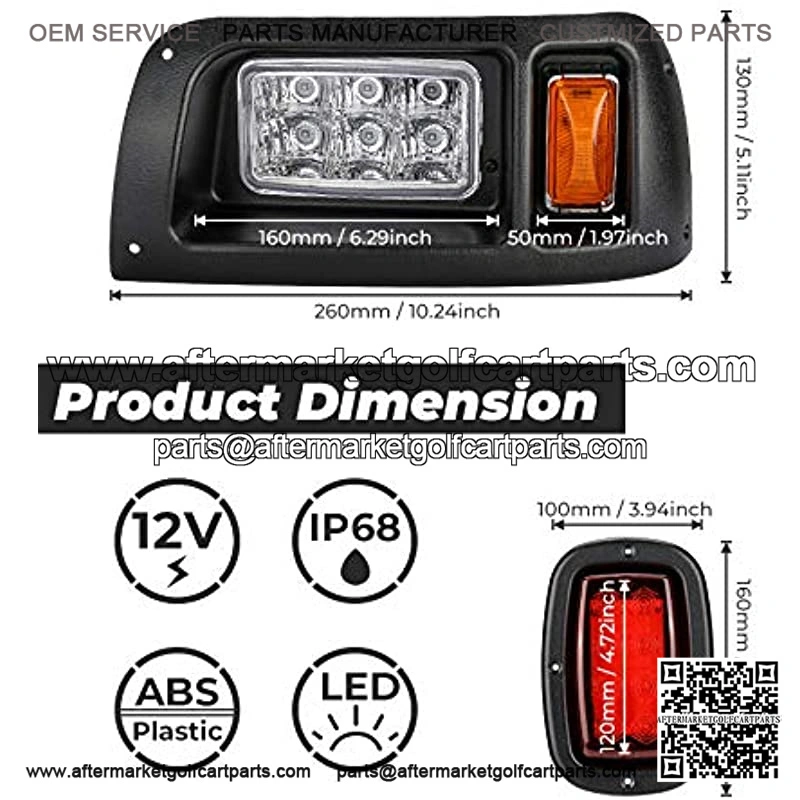 Compatible with Light Kit, LED Headlight & Tail Light for Gas & Electric compatible with golf carts (1993 & up) 12V