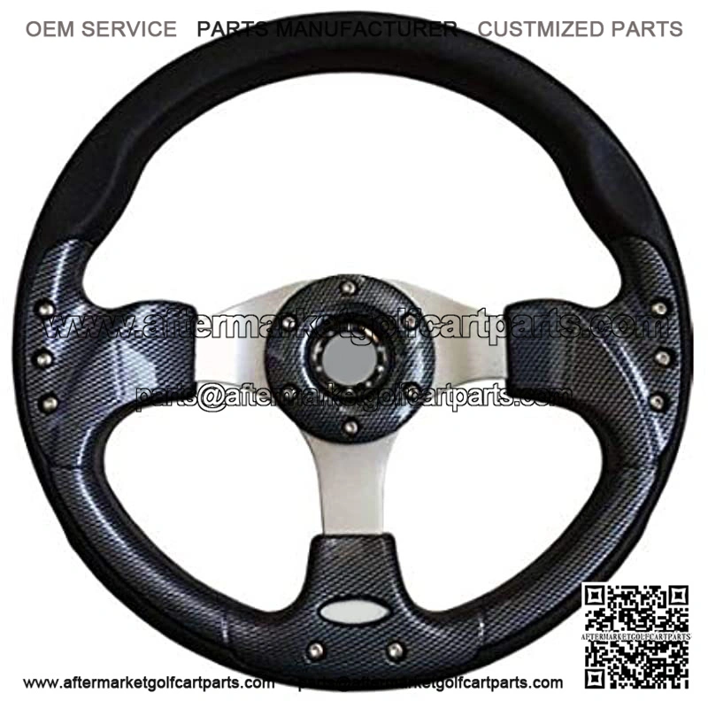 . Replace your standard steering wheel with a Carbon Fiber look ** MUST BUY ADAPTER** . Deluxe Steering Wheel . Round Style . Fits STAR Classic Golf Carts 2007-2016