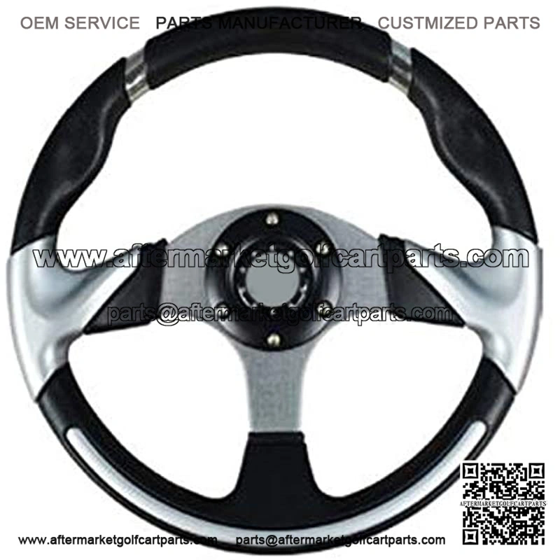 . Replace your standard steering wheel with a new look ** MUST BUY ADAPTER** . Deluxe Steering Wheel . Silver Round Style . Fits STAR Classic Golf Carts 2007-2016