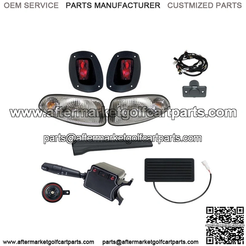 Ride your E-Z-GO RXV golf cart at night with the safety of the Deluxe Factory Style Street Package halogen light kit for 2008 through 2015 gas or electric carts. This light kit features the DELUXE turn signal switch which is where you will control all functions of your light kit. Also included is the OEM style brake light switch which is integrated into the brake pedal. High quality, easy to install wiring harness. Halogen headlights. 12V operation for gas or electric carts.