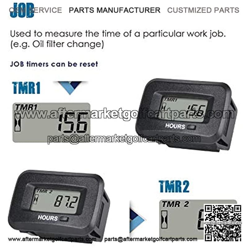 JOB TIMER—-JOB timer used to measure the time of a particular work job, Like change oil, Air filter Replacement etc…;Includes 2 resettable JOB timers:TMR1 & TMR2 ;Read up to 999,999 hours ; 0.1 hour accuracy;