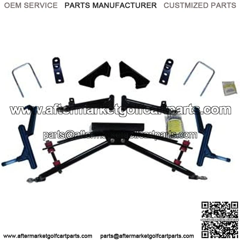 double A-arm lift kit (4″ lift). Accepts up to 23×10.5-12 tire. Club Car gas 82-96.5 DS w/metal dust covers on front hubs.