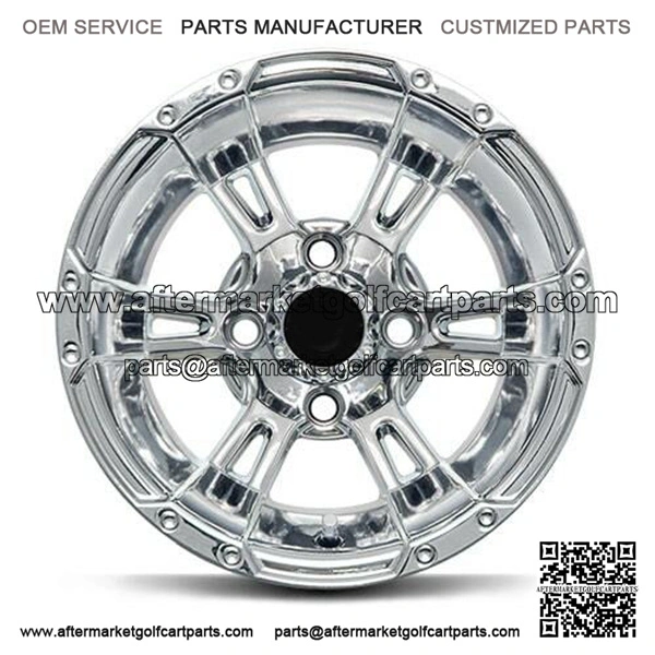 DoubleTake 57 Series 12″ Golf Cart Wheel, 2+5 Offset -47 Available in Chrome, Satin Black, or Machined Silver + Black You can add on lug nuts (pack of 16) if you need to replace your lug nuts (choose either Standard for Club Car/EZGO or Metric for Yamaha)