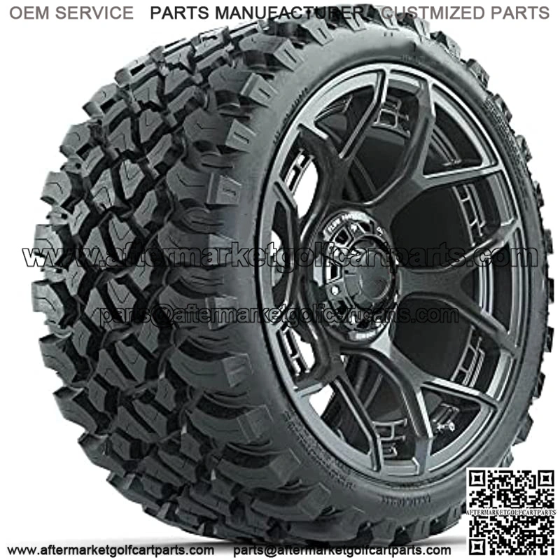 Evolution Gunmetal 15″ Lifted Golf Cart Wheels Mounted on 23″ Steel Belted Radial All-Terrain Tires (23×10-15) | Set of 4