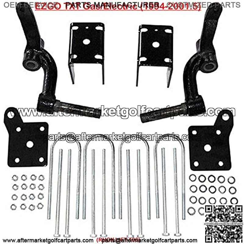 spindles are the strongest, safest and easiest lift kits to install. Directions are provide for a bolt on installation without having to cut or weld anything. Fits the Following Cart(s): 1994-2001.5 EZGO TXT Gas & Electric golf carts. Will NOT work with your stock wheels and tires! Requires a minimum of 10″ wheels Everything is included within the kit for an easy installation EVERY Products that are sold by “The King” are rigurously tested, and must meet very high set standards before the product is put on our shelves! Our customers mater! And we are here to get them the Best Golf Cart Accessories for the Best Prices! No Question!