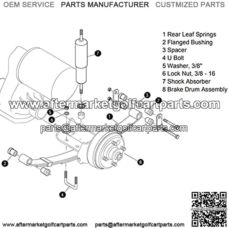 Heavy duty 4 -leaf spring x 2 ( OEM #74207-G01)Metal Spacer x 4 ( OEM # 70289-G02)Rubber Bushing x 8 (OEM # 70291-G01) U bolts x 4 (OEM # 72618-G01)Washer x 8 ( OEM #00560-G01)Lock Nut x 8 (OEM # 11098-G05)