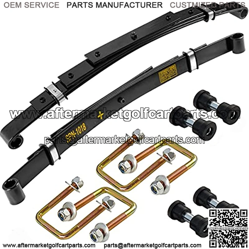 Fits EZGO TXT 1994-up electric golf carts and 1994-2009 gas golf carts. Includes (8) Rubber Bushings & (4) Sleeves & (4) U-bolts with nuts. All replacement parts meet or exceed OEM specifications. 4-leaf heavy duty design – Recommended for rough ride terrains or heavy load as adding a rear seat or cargo box. Unlike many leaf spring kits on the market, Our kit uses rubber bushings instead of polyurethane for a smoother, more squeak free ride. Easy installation & 1 year warranty.