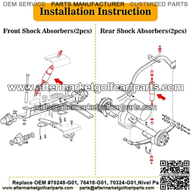 Replaces OEM Part Numberezgo shocks great replacement for OEM shocks, replace OEM #70248-G01, 76418-G01, 70324-G01,Nivel Part #5006.