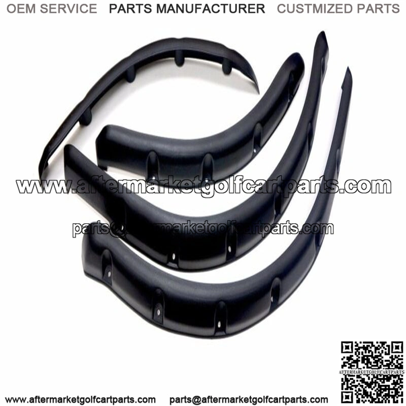 . Set of 4 Fender Flares . Fits Club Car DS Golf Carts . Made of durable, injection-molded black plastic with textured finish . Protects your cart and passengers from rocks, gravel, mud and other damaging debris that can be kicked up by over-sized tires . These are a must-have accessory for off-road activities and all-terrain use . Fender Flares measure 3. wide . All mounting hardware included .