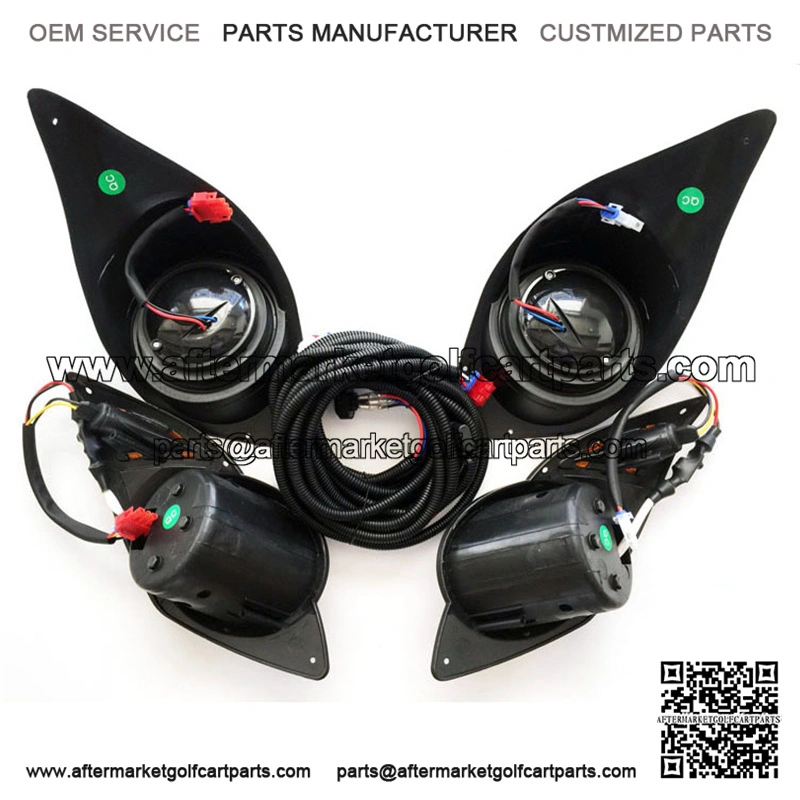 Automotive style adjustable headlights with the turn of a screwNew and improved wiring connectorsInjection molded plastic bezels – BLACKTapered holes for professional lookStainless steel mounting screwsFOR ELECTRIC CARTSThis light kit is designed for 12-VOLT OPERATION ONLY. Lightsand accessories WILL BE DAMAGED if the system is hookedup to a 36-volt or 48-volt or any other voltage exceeding 12 volts.Damage from incorrect wiring or operating this kit at a higher voltageThan 12 volts will VOID ALL WARRANTIES.If batteries can be configured to only supply 12 volts (e.g. two 6V or one 12V battery) light kit can be hooked up directly but is not recommended.For all electric carts a voltage reducer is STRONGLY RECOMMENDED.After voltage reducer is installed please test voltage witha voltage reader prior to installation to determine theoutput voltage is no higher than 12 VOLTS.