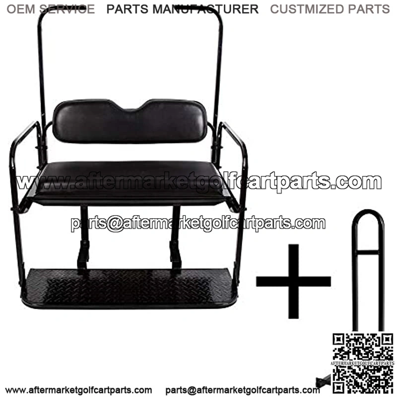 Flip Folding Rear Back Seat Kit for 1995-Up EZGO TXT Golf Cart, Black Cushions, Include Extra Handle Bar, You Will Receive Three Packages & All Hardware