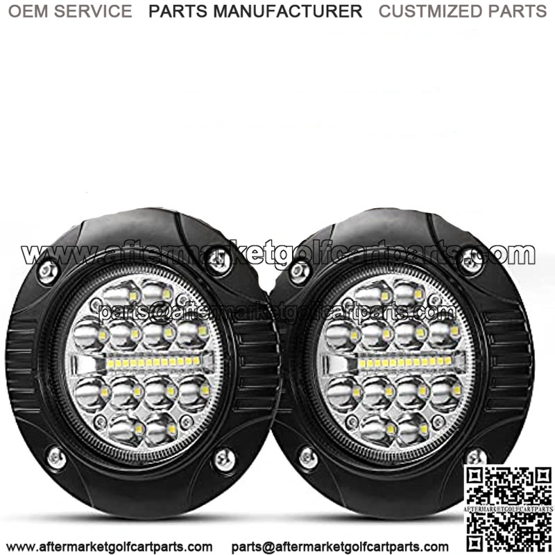 SUPERIOR BRIGHTNESS Super brightness with 48 Pcs brilliant CREE LED will generate 48 watts.High-quality LED chips emit very bright light REVOLUTIONARY CREATIVITY 2 Pcs 48W LED off road work lights have combo surround design. Centered 120 flood LEDs surrounded by dual row 30 spot diodes,offering a perfect focused light with large-angle flood beam around to acheive both longer range and wider vision NEW TECHNOLOGY Thermally conductive plastic.No housing color fade,quake-proof EXCELLENT HEAT DISSIPATION Quick cooling heat sinks and high-quality heat conduction silicone gel can effectively extend the lifespan of the light bar to over 50,000 hours WIDELY APPLICATION Flush mount round LED driving lights can be applied to any vehicles, golf cart ,car, off road,ATV, SUV, UTV, truck, boat, off-road, trailer, motor, bicycle, excavators, tractor and other heavy equipment