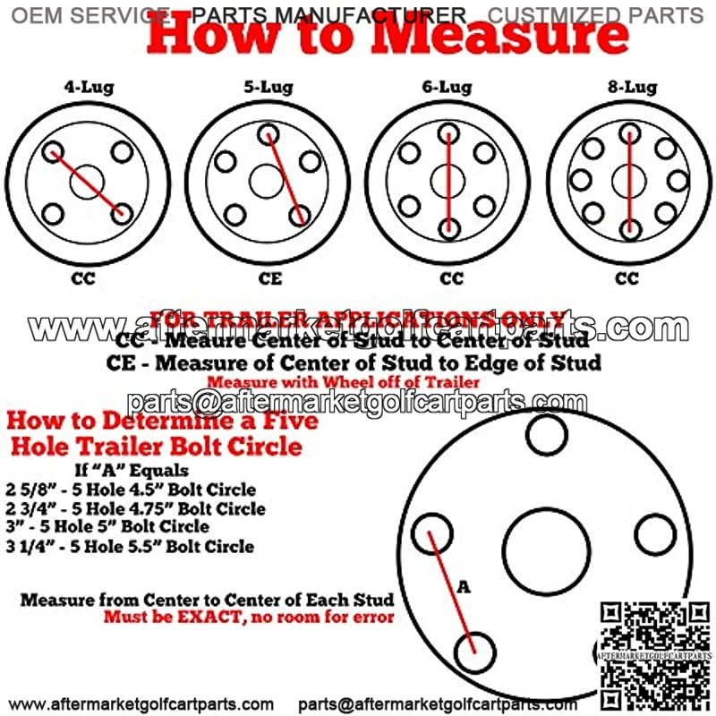 The 4/4 bolt pattern fits most modern golf carts.