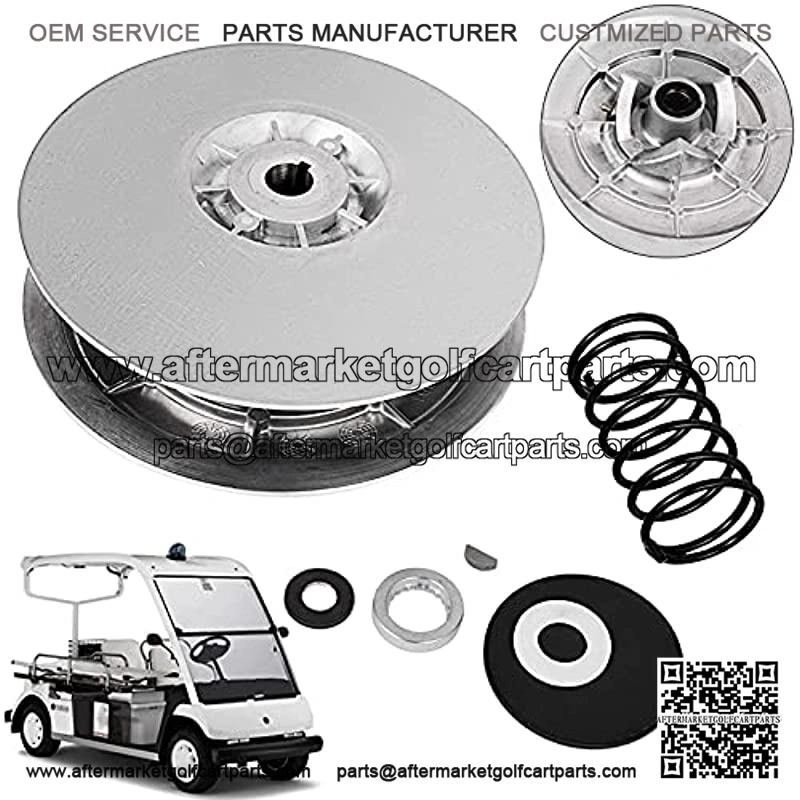 Full-Set Equipment: The golf cart clutch part number is CP-0105, including the fixed pulley, chute wheel, spring, spring seat with performance ramp, input shaft gasket, plastic washer, keyway, washer, etc.