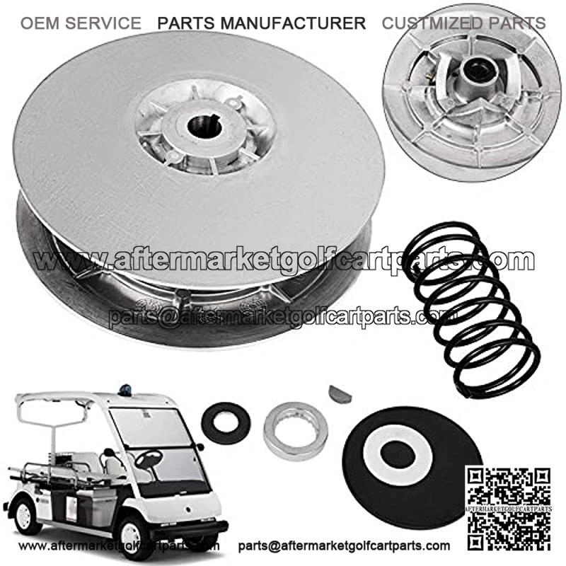 FULL-SET EQUPMENThe golf cart clutch part number is CP-0105, including the fixed pulley, chute wheel, spring, spring seat with performance ramp, input shaft gasket, plastic washer, keyway, washer, etc.