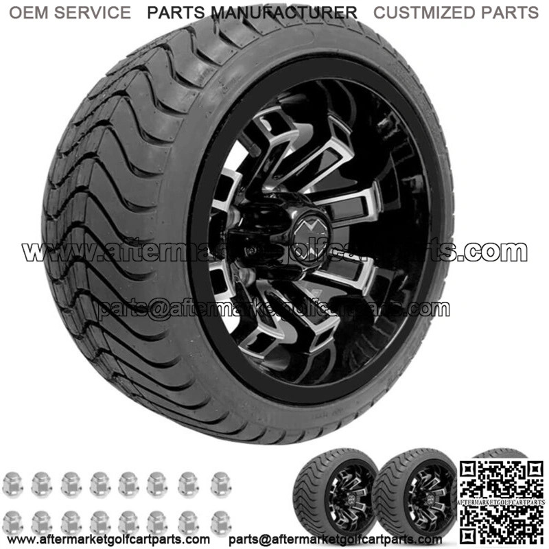 Golf Cart 12″ Recluse Machined/Black Wheels on 215/35-12 Venom Street Tires (4)