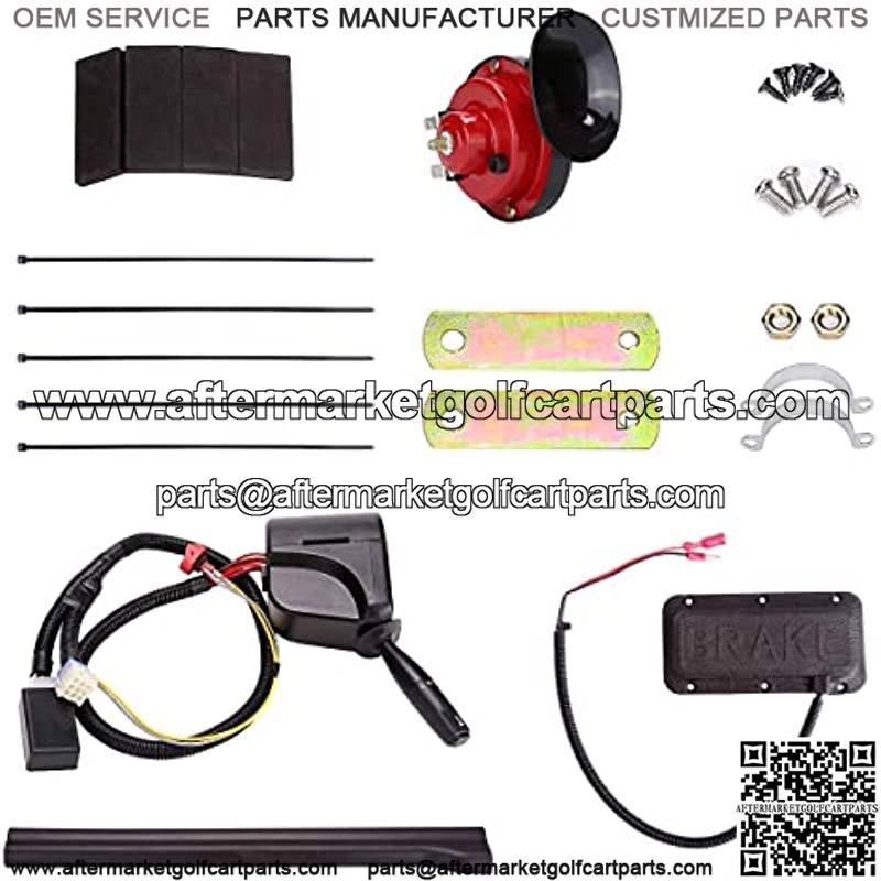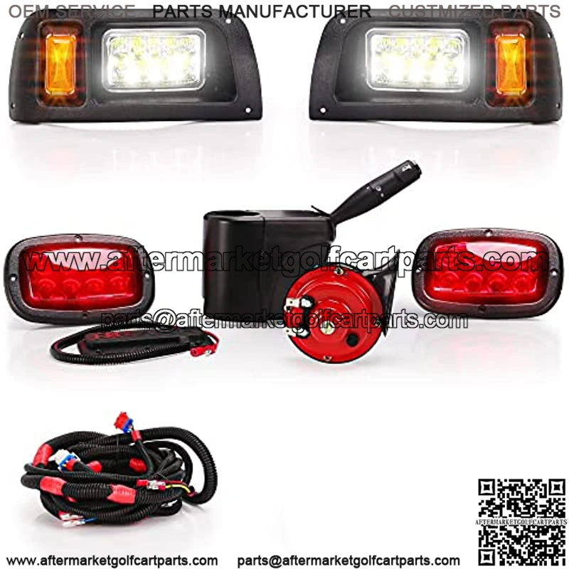 Scope of ApplicationGolf cart LED light kit for Club Car DS 1993-up gas & electric models High Performance Plug and play upgrade headlights, amber turn signals, tail lights(brake light). Front head lights with high output top quality LED, much brighter and durable than halogen or HID headlight Kit IncludesThe led light kits are all 12V. If your RXV golf cart is 48V or 36V, you must need a 48V-12V or 36V-12V voltage reducer (voltage reducer not included), if not, the led light will be burnt out. Package Includes2* LED front headlight with turn signals, 2* LED taillight, 1* horn, 1* turn signal lever with headlamp horn switch, 1* steering column cover, 1* brake pad switch (pedal mount), 1* plug & play wiring harness, 1* cutting templates & screw washer set, 1* installation instructions Good ServicePlease be sure to make the correct battery wire connections, if you do not know how to install golf cart led light , please contact us for an installation video.Offering 1-year limited warranty, please feel free to contact us with any questions you may have!