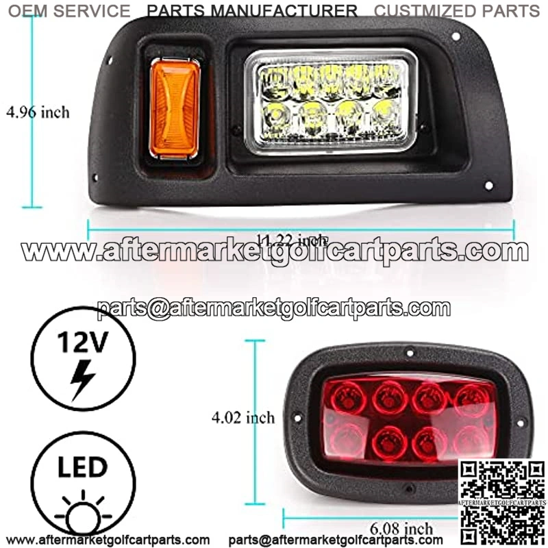 Golf Cart 12 Volt LED Headlight and Tail Light Kit for Club Car DS Carts 1993-up Gas & Electric Models,with upgrade headlights, amber turn signals, brake lights