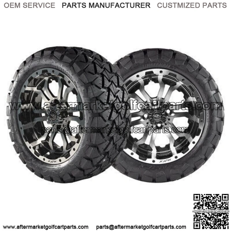 Golf Cart 14″ Machined black Wheel 22 Timber Wolf Terrain Tires gtw