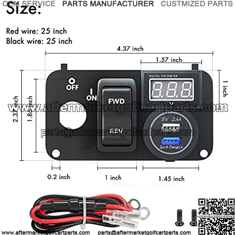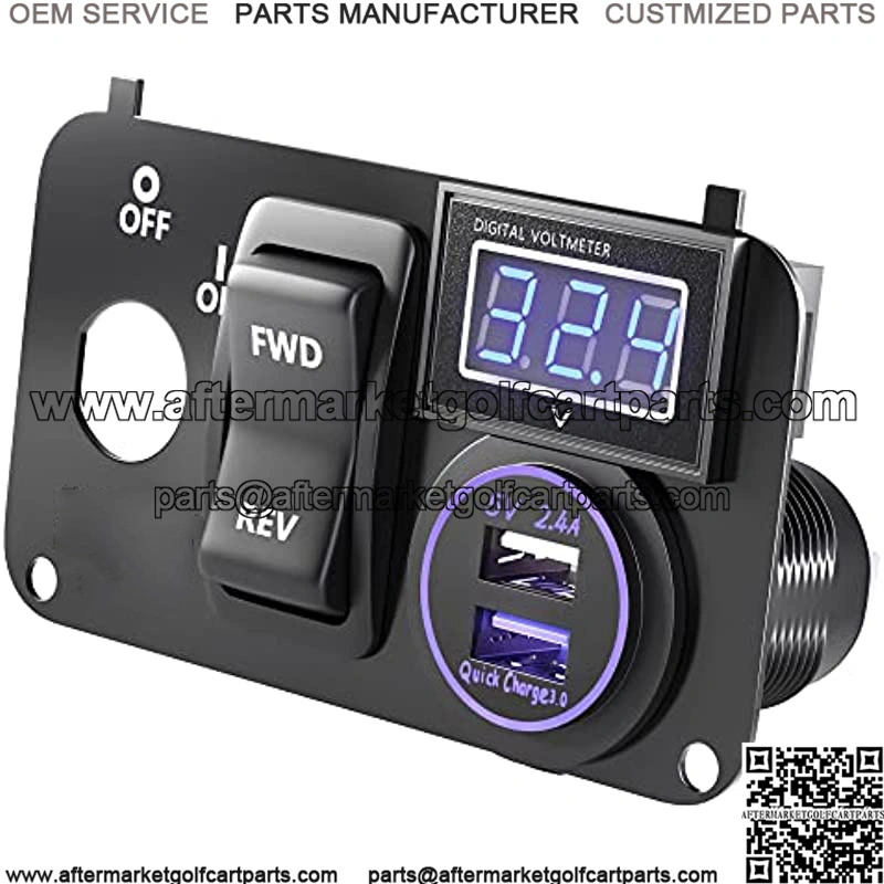 Golf Cart 3 in 1 multifunctional Integrated Panel,Dual USB Charger Socket + LED Digital Voltmeter + Forward Reverse Switch Button