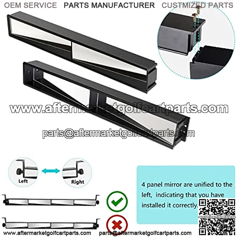 Easy Installation – Installation required drilling, instructions and complete mounting hardware are included. It can be easily installed on front roof or roll cage of your carts according to the instruction. NOTE: the 4 panel mirror must be unified to left. DONnstall it in opposite direction.