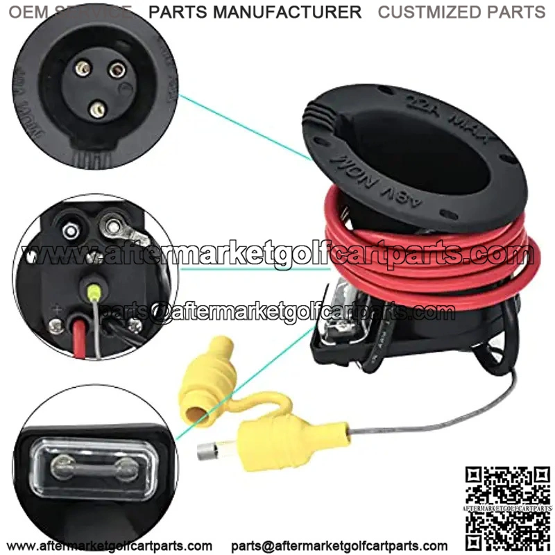 Golf Cart 48V Charger Cord Plug & Charger Receptacle for Club Car DS Precedent 2000-up OEM# 101828901 101802101 101796801 103375501