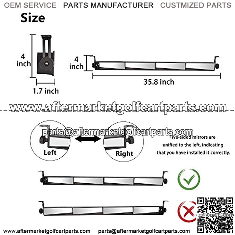 Mirror Size:35.8″L x 1.7″W x 2.5″H ,Fits All Golf Carts,like EZGO, Club Cars and Yamaha,also Suitable for many types of motorsports, ATV’s and other trucks;