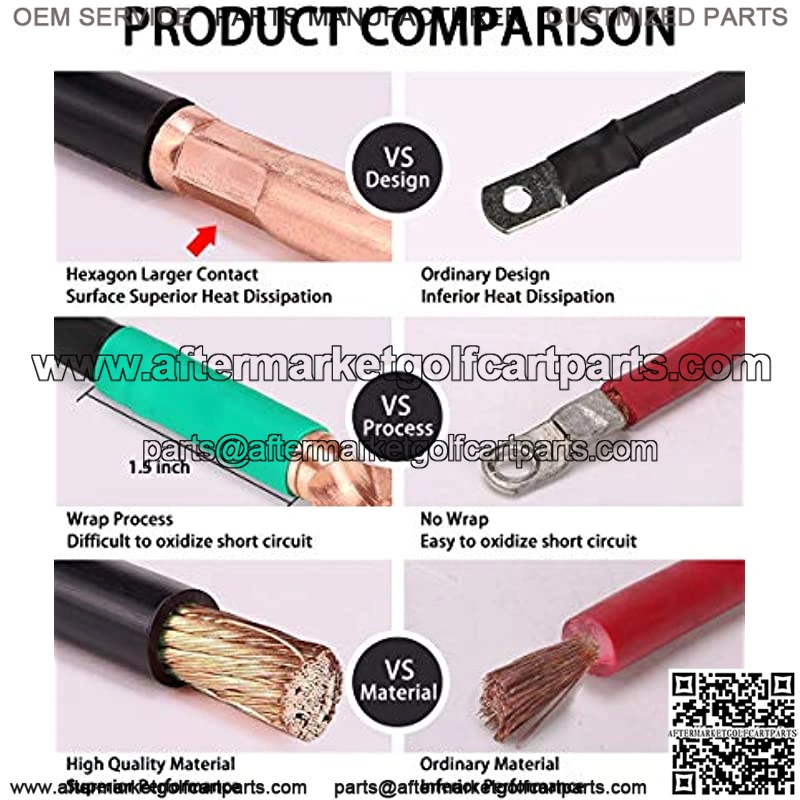6 surface heavy pressure wiring, the wire ear is in full contact with the wire, 100% fine stranded PURE COPPER cable for high amperage applications, 600 volts,100% does not burn the wire, and does not corrode. No heating when climbing, improve battery life and cruising range.