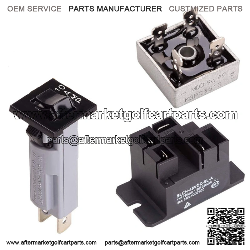 Relay, Rectifier, Circuit Breaker Charger Repair Kit for Club Car 48V Powerdrive 1 & 2 Charger, OEM CCX8506 102273501 101828601- Golf Cart 3 Charger repair parts that go bad on the 48V Club Car Powerdrive 1 (#17930) & Powerdrive 2 (#22110) Battery Charger; (Charger NOT Included)- Includes (1) 15 Amp Circuit Breaker (Fuse), Replaces OEM: CCX8506, 101828701.- Includes (1) 30 AMP Relay, Replaces OEM: 103414901, 103397901, 101828601.- Includes (1) Pd2 Rectifier, Replaces OEM: 103517601, 102273501.- If you aren’t sure these parts are the issue with your charger, please contact us prior to purchasing.- Made of high-quality materials, which are durable, sturdy to use, not easy to break, corrosion-resistant, and can support for a long time service.