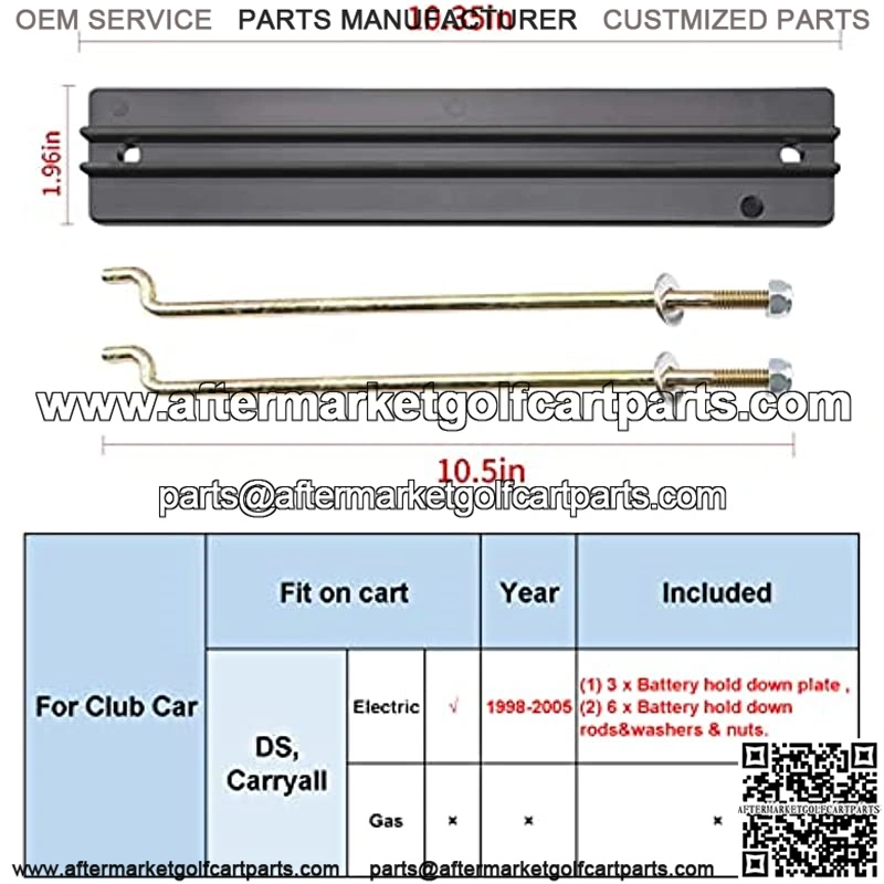 3pcs Battery Hold Down Plate, Replaces club car OEM:101090801. 6pcs Hold Down Rods, Replaces club car OEM:1013683.