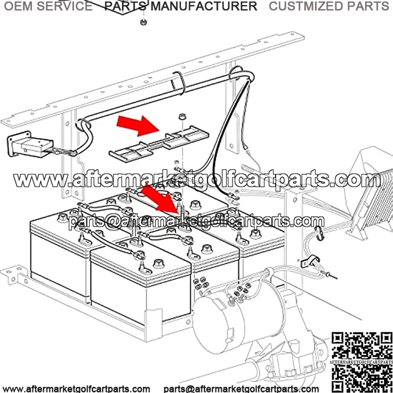 This battery hold down plate fits EZGO TXT 1994-up 36 Volt electric golf cart.