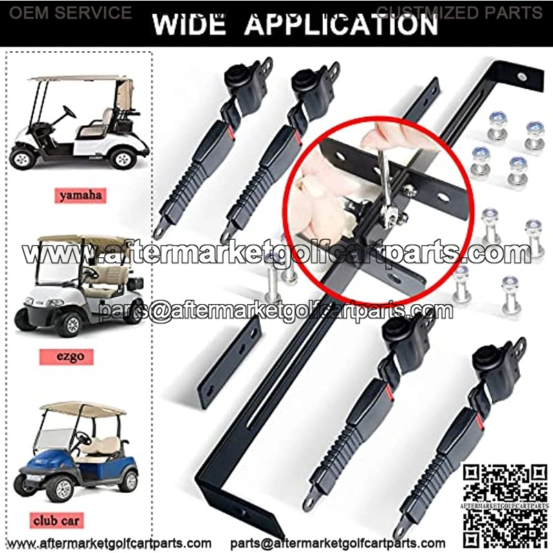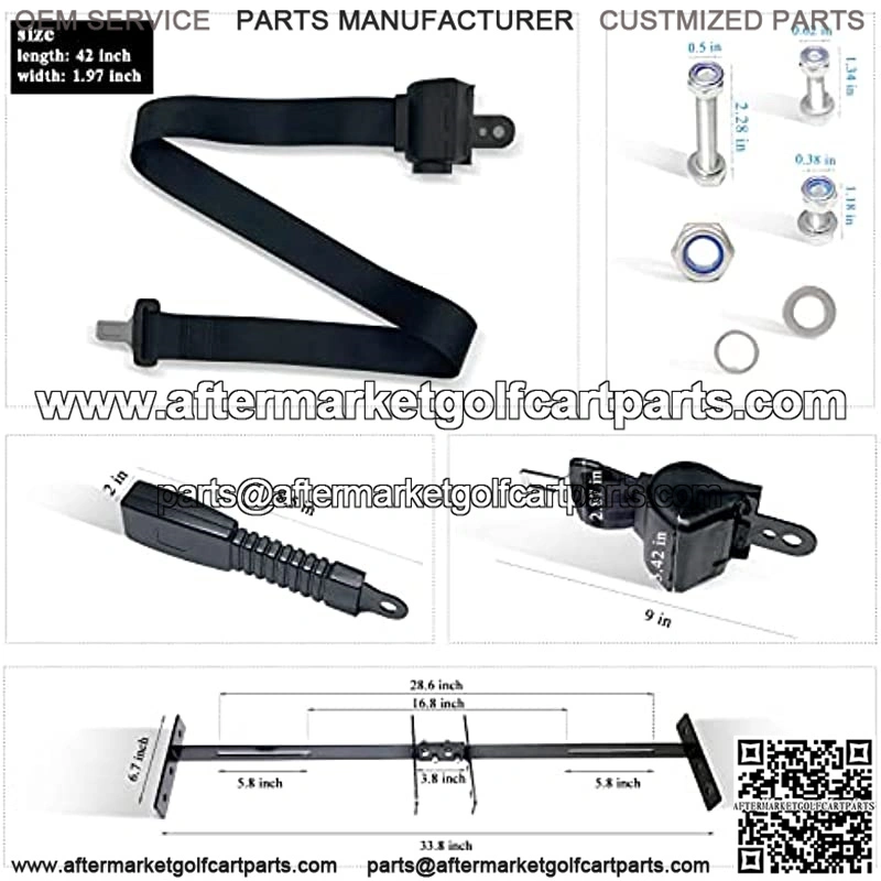 SPECIFICATION – Golf Cart Belts Bracket Kit size: 35″ x 6.9″. Retractable Belt length: 42″. Perfect for 4 passenger golf cart.