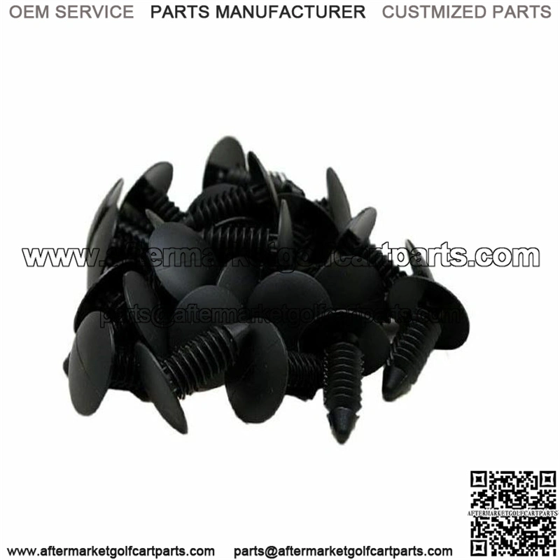 . Includes (100) Christmas tree plug fasteners . Black, plastic push rivets . For various golf carts makes and models . Replaces OEM Numbers: 1010434, 16816G1 . **Image may differ from actual item received due to lighting or photo source** . Measurements: 11/16″ Head, 1/4″ Stem Diameter, 1 1/16″ Stem Length .