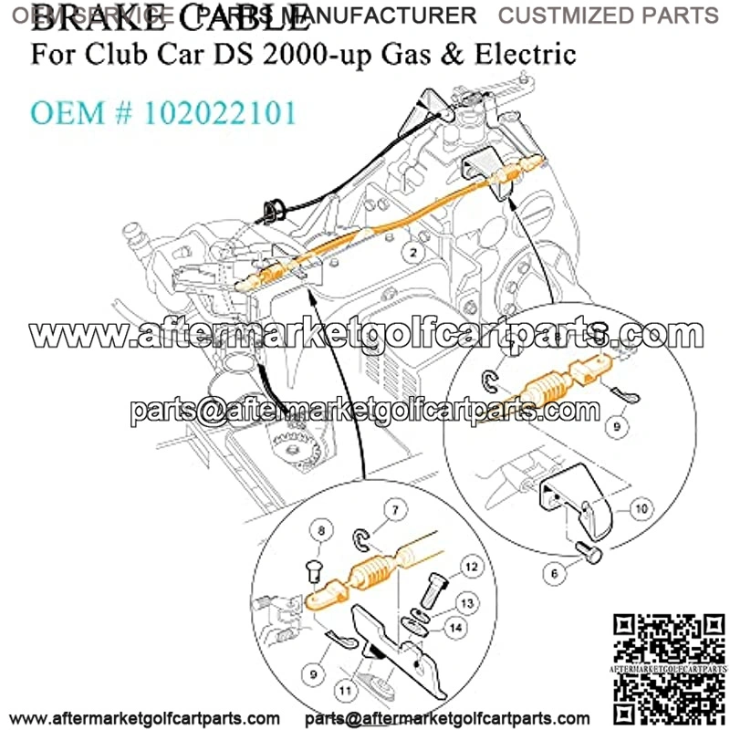 Golf cart brake cables fits Club Car DS (Years 2000-up) Gas or Electric Golf Cart.