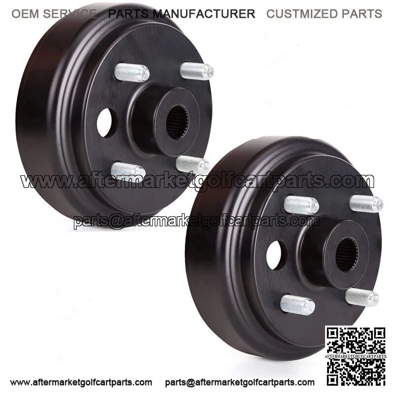 Rear Wheel Brake Drum for EZGO 4 Cycle Gas Golf Cart 21807-G1 (2 Packs)- Large hole golf cart rear wheel brake hub drum assembly, fine spline, short bolt lug, replaces OEM: 21807G1 21807-G1 21807-G1P 21807-G1M, 41843-94;- Brake drum For EZGO 4 Cycle Gas TXT/Medalist 1996-2009, RXV 2009-up, Shuttle 4/6 and ST Expre1995-2008, ST Sport II 2006-2009;- Brake drum assembly For EZGO 4 Cycle Gas MPT 800/1200 2004-2008, Marathon 1992-1994, Workhorse 800 1998-2001, Workhorse 1200 1996-2003, Columbia 1994-1999;- Golf cart brake drum For EZGO Electric Medalist 1994-1997, Shuttle 4/6 and ST Expre2005-2001,ST 400: 2010-2012, MPT 800: 2011-2012, MPT 1000: 2004-2012, ExpreL6/L4/S6/S4 2012-up;- NOT suitable for other electric models and the earlier 2-cycle gas brake drum with small hole and are not interchangeable with this hub drum.- Note: when replacing the hub, make sure that the rear axle splines are not loose or worn out, otherwise the hub will be damaged, checked regularly keeps your cart safe- Package includes: 2 pcs EZGO brake drum.