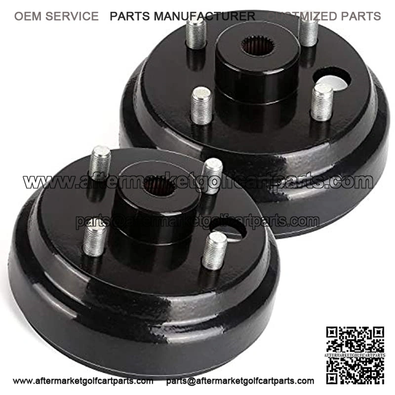Set of 2 Rear brake drums with 4 lug studs and a splined center hub,Fits 1982-Current Electric & 1982-1993 2-Cycle Gas E-Z-GO Models (Replace EZGO OEM# 19186G1);