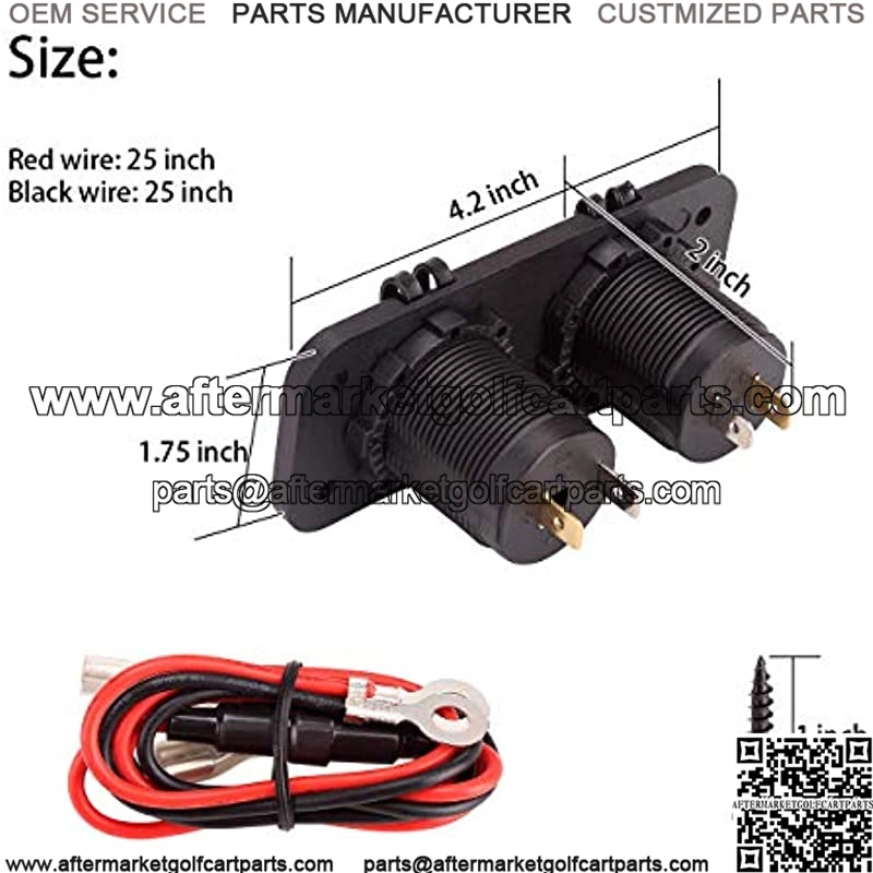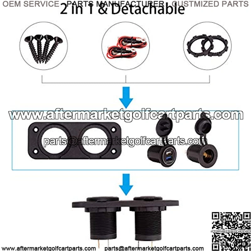 2 USB Charging Ports:one Quick Charge 3.0 USB port,one 2.4 A big output port,enables to charge 2 devices simultaneously. Built-in smart chip will intelligently detect your devices and charging devices at optimal current; This USB charger sockets fits for 12 VOL input golf carts;
