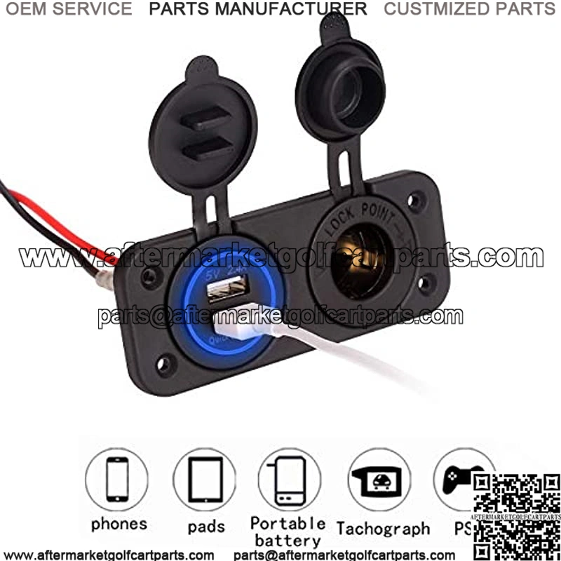 Golf Cart QC 3.0 Dual USB Charger/Port+Cigarette Lighter Outlet, Universal For EZGO Club Car YAMAHA Golf Carts DC 12V/24V