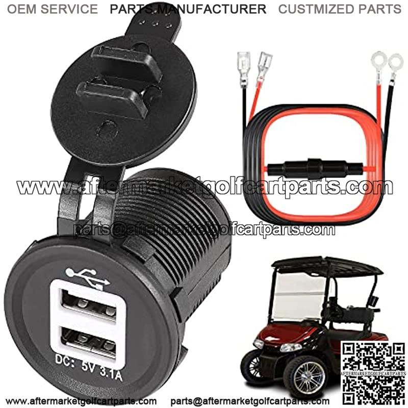 Golf Cart DC 9V-48V Quick Charge 3.1A Dual USB Charger, 2 in 1 USB Golf Cart USB Charger Ports Outlet Universal for Club Car, EZGO and Yamaha