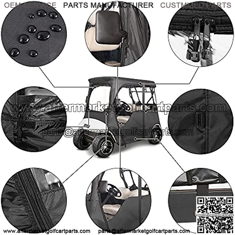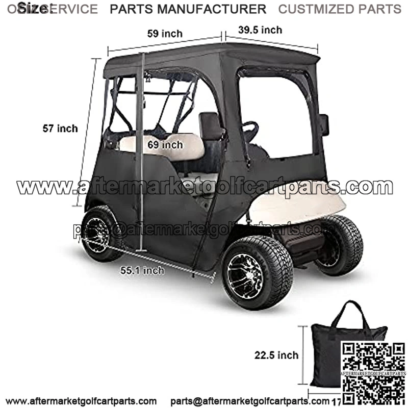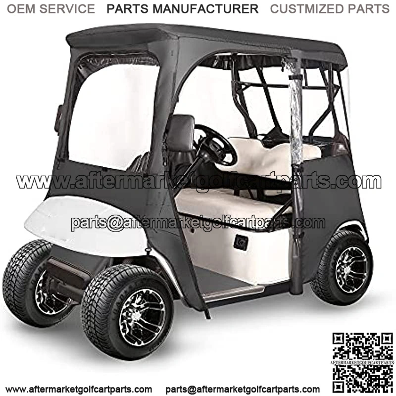 Golf Cart Deluxe Enclosure for EZGO TXT 2 Passenger, 4-Sided Clear PVC Window Rain Cover with Zipper Entry, Black