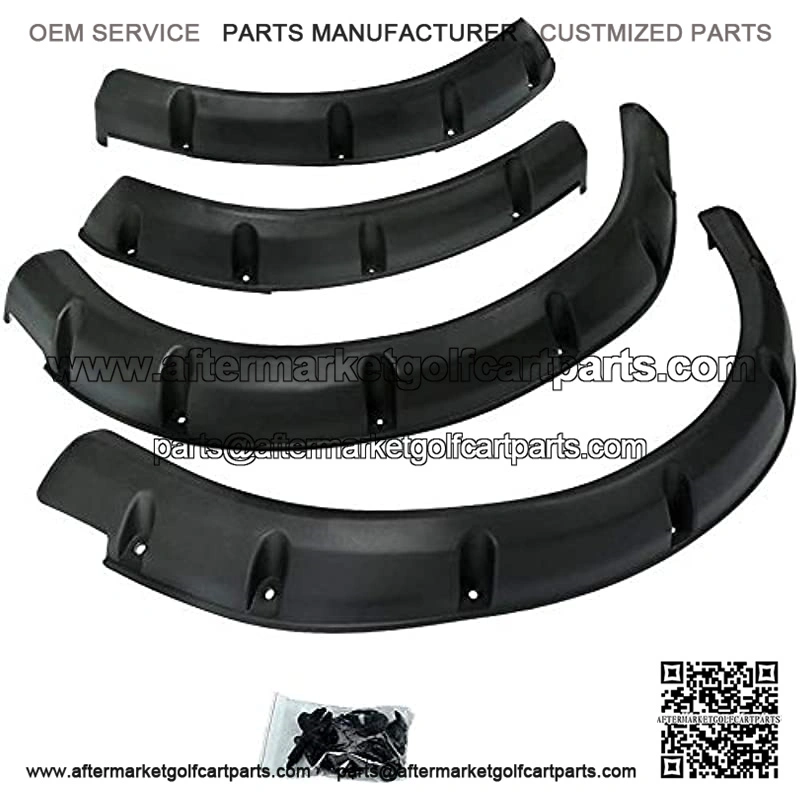 High Quality and Durability:golf cart fender flare set made of durable injection-molded black plastic with textured. The material is also more flexible to avoid breakage.Andgolf cart fenders use stainlesteel scews and nuts. it is strength to handle and when being installed without breaking.