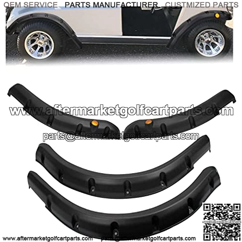 Applicable ModelsGolf cart fender flares fit for Club Car DS 1993-up gas & electric models, set of 4, including 2 front and 2 rear fender flares. High PracticalityThe mudguard can block the dirt, stones and mud splashes brought up by the tires when driving, Our Golf cart fender flares keep water and rocks from being thrown at Driver & passengers. Upgraded AppearanceHigh-quality molded black plastic and a front fender with a circular reflector. The atmospheric appearance makes your golf cart look like an off-road vehicle. Easy to InstallThe mudguard can be installed quickly and easily within a few minutes. All the installation hardware is included in the package, and it needs to be drilled in the golf cart. It is recommended that two people cooperate to adjust the appropriate installation position and accurately locate the drilling position. Satisfactory Serviceis committed to designing and producing high-quality and improved products.If there is any problem with the product,please contact us and we will serve you.