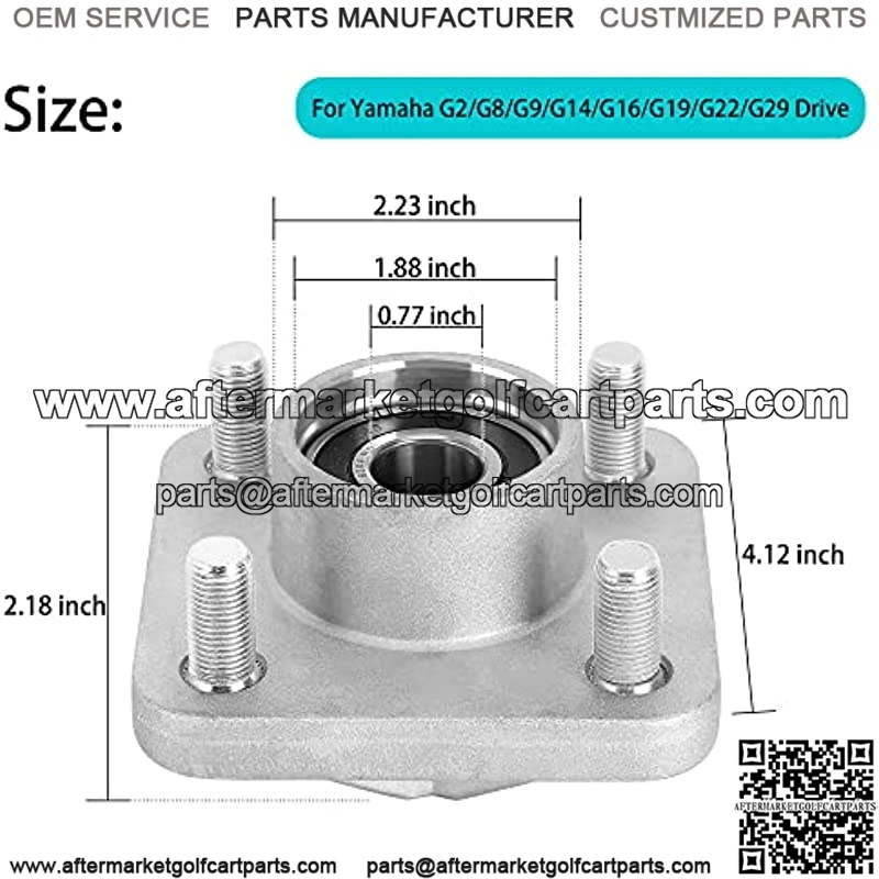 Complete aluminum hub includes bearings, races, 4 lug bolts, seal and dust cover Fits Yamaha G2 G8 G9 G14 G16 G19 G22 G29 Drive gas & electric golf cart Replace OEM: JG5-WF511-00, JG5-WF511-10-00, 5057 + 3480 + 3852 + 3872 Our parts meet or exceed OEM quality standards, 1 year warranty