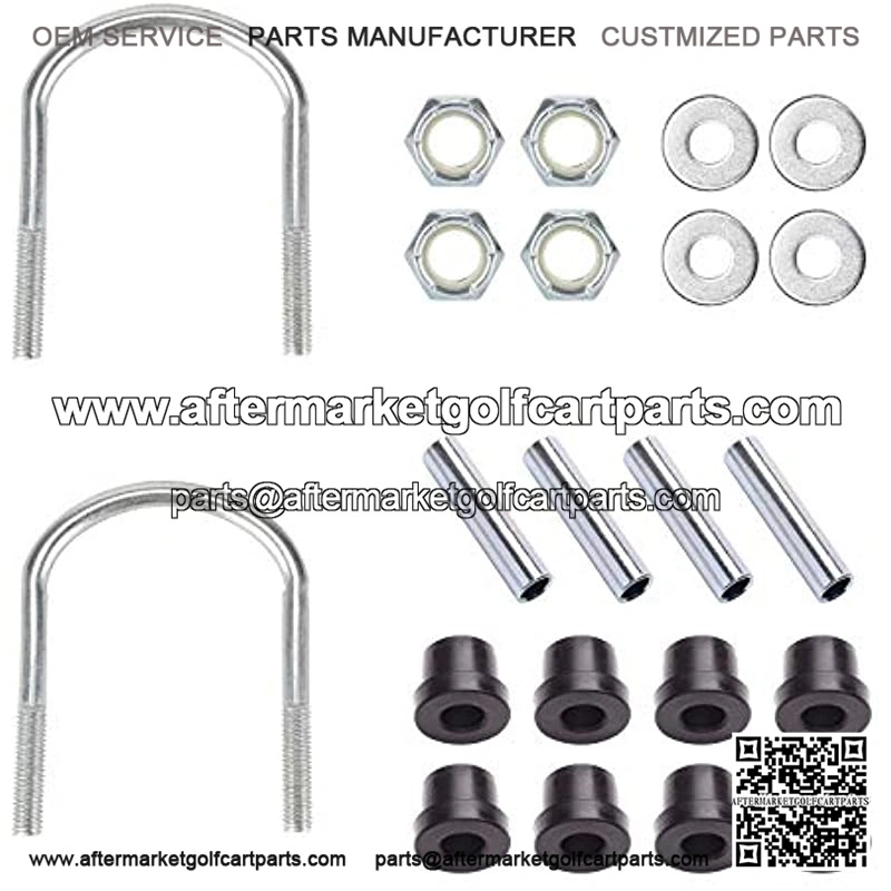 Kit includes: 2*heavy duty leaf springs(replace OEM 102509301, 102513001), 8*urethane bushings(OEM 102506601), 4*metal sleeve spacers(OEM 102506401), 2*U-Bolt(OEM 1012180)