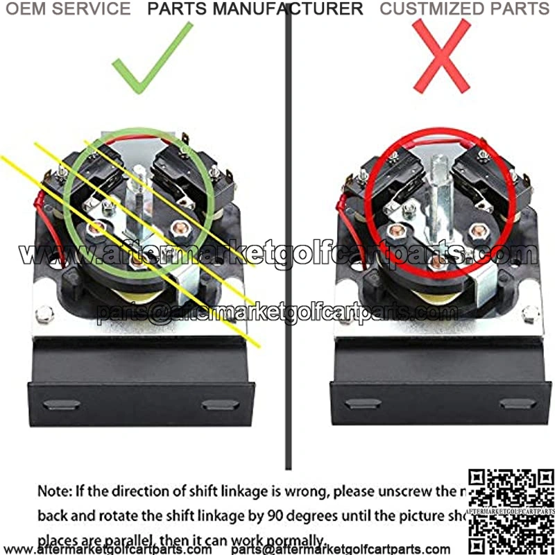 Note:1. If the direction of shift linkage is wrong, please unscrew the nut on the back and rotate the shift linkage by 90 degrees until the picture shown: three places are parallel, then it can work normally. br2.Make sure the Reverse Switch for EZGO to disconnect a battery before installing this selector and we strongly recommend 4 gauge cables and HD solenoid.
